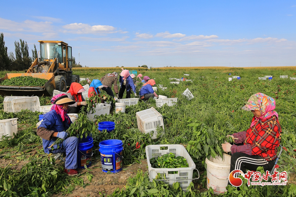 9月1日,嘉峪關市新城鎮(zhèn)長城村一農(nóng)民專業(yè)合作社種植的子彈頭辣椒喜獲豐收,種植戶搶抓農(nóng)時采摘,農(nóng)用機械車輛穿梭于田間地頭,鄉(xiāng)村田野呈現(xiàn)出一派繁忙的景象。