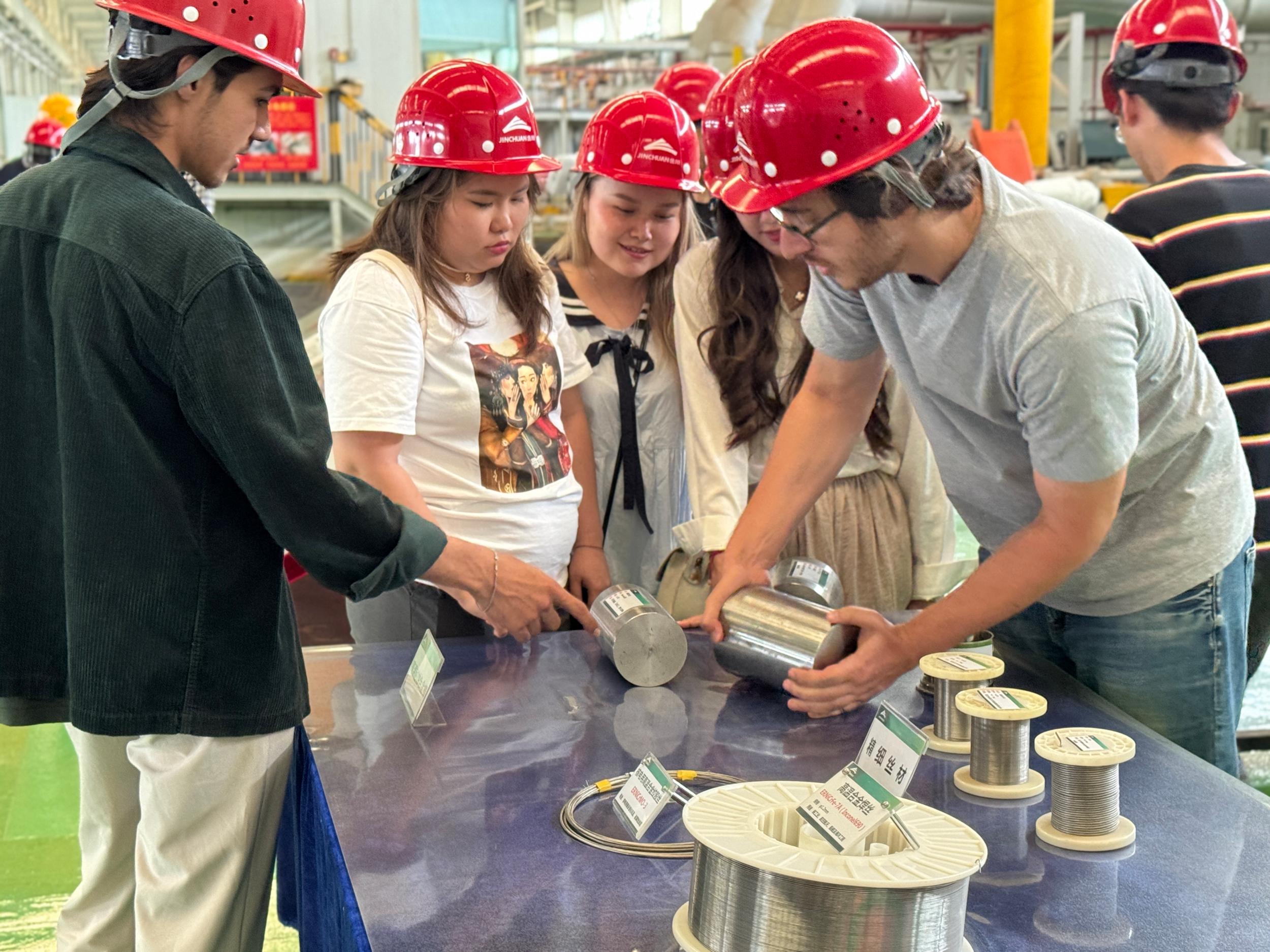 “國際體驗(yàn)官”們在鎳合金產(chǎn)品展示區(qū)交流互動