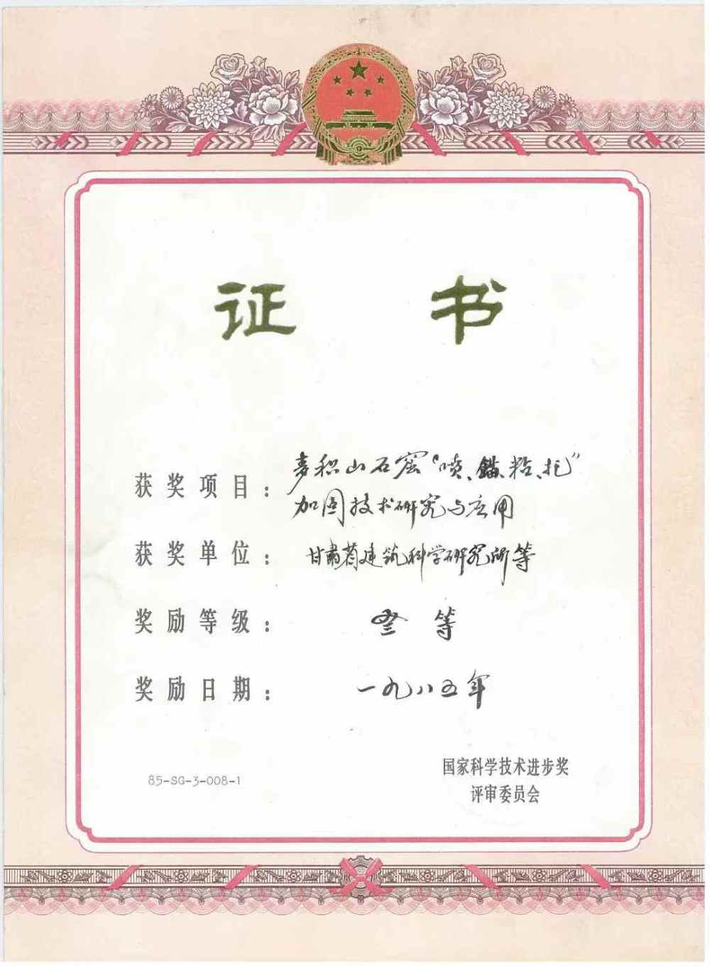 鑒定認(rèn)為,麥積山石窟維修加固工程在總結(jié)了國內(nèi)巖體加固經(jīng)驗(yàn)的基礎(chǔ)上,結(jié)合麥積山石窟巖體的特點(diǎn)和不改變?cè)瓲畹脑瓌t,成功地采用了“噴、錨、粘、托”綜合加固技術(shù),為保護(hù)石窟文物開創(chuàng)了一條新的途徑。1985年,甘肅建科院榮獲國家科技進(jìn)步獎(jiǎng)三等獎(jiǎng)、甘肅科技成果獎(jiǎng)二等獎(jiǎng)。