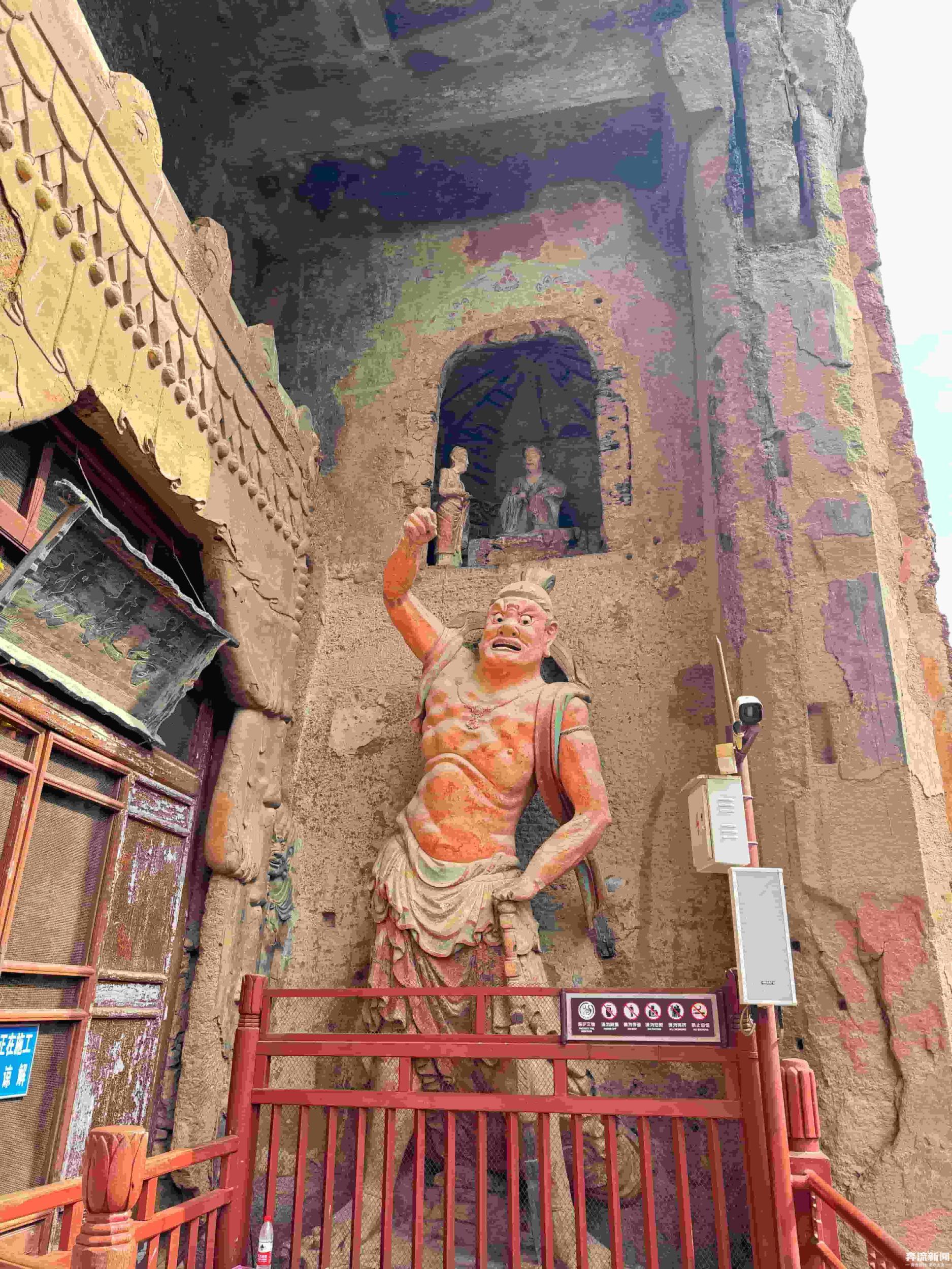 形如麥垛的山體之上,窟龕如同蜂窩般密密麻麻分布在絕壁之上。麥積山石窟始鑿于十六國后秦時期,現(xiàn)存大小窟龕221個,造像3938件10632身,壁畫近1000平方米。