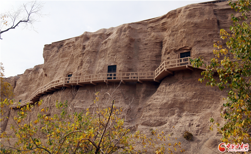 榆林窟,位于瓜州縣城南70公里處。洞窟開鑿在榆林河峽谷兩岸直立的東西峭壁上,因河岸榆樹成林而得名。現(xiàn)存有完整壁畫的洞窟43個,其中東崖32窟、西崖11窟。保存彩塑270余身、壁畫5200余平方米,約占莫高窟壁畫總面積的九分之一,是僅次于莫高窟的壁畫藝術寶庫。