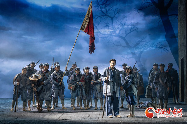 該劇以紅軍長征途經(jīng)甘肅哈達(dá)鋪的重要?dú)v史事件為背景,通過藝術(shù)化的舞臺(tái)呈現(xiàn),生動(dòng)展現(xiàn)了革命先輩的堅(jiān)定信念與偉大精神。全劇通過人物群像與歷史瞬間的交織,彰顯信仰力量與軍民深情,以時(shí)空交織的敘事結(jié)構(gòu),穿插毛澤東與周恩來回憶對(duì)話的閃回場(chǎng)景,通過“序—八場(chǎng)—尾聲”的結(jié)構(gòu),串聯(lián)紅軍在哈達(dá)鋪的休整與決策過程,兼具歷史縱深感與戲劇張力。