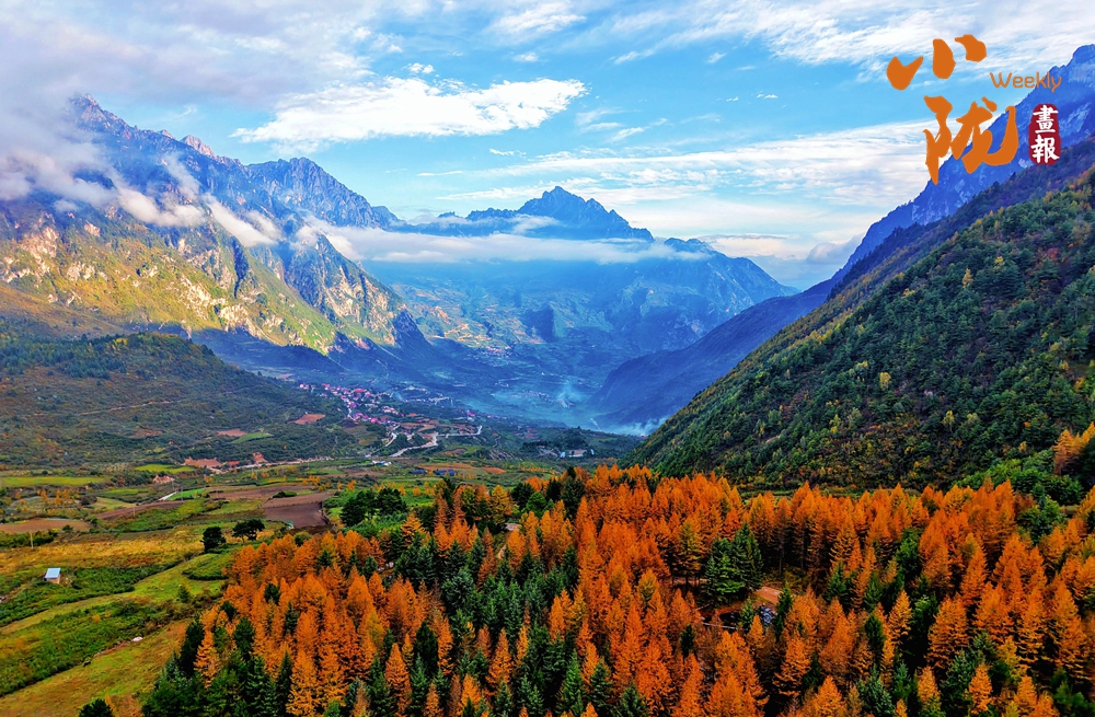 白云飄渺下的高山草甸,萬仞筆立的石巖劍鋒,蒼郁錦繡的林海松濤,濃郁多彩的田園風(fēng)光,桑煙裊裊的藏宅......初冬,這里顯得既靜謐安詳,又雄奇壯麗。