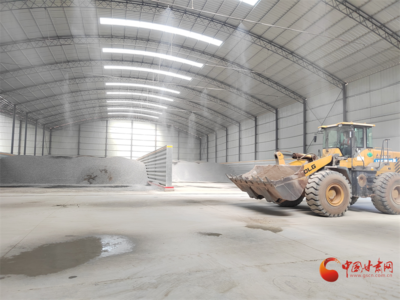 G30忠茅擴(kuò)容改造項(xiàng)目拌合站儲(chǔ)料車間,一輛輛工程車正在來(lái)往穿梭儲(chǔ)備物料。