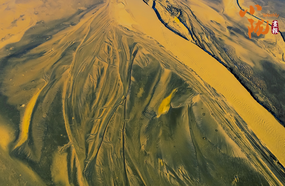潮水褪去,灘涂勾勒出極似樹根分支的有機形態(tài)——主脈粗壯有力,次脈隨之伸展,末梢則細密如須根,整片灘面仿佛成為一棵倒生巨樹的根系拓印,靜默中透出磅礴的地質美感。
