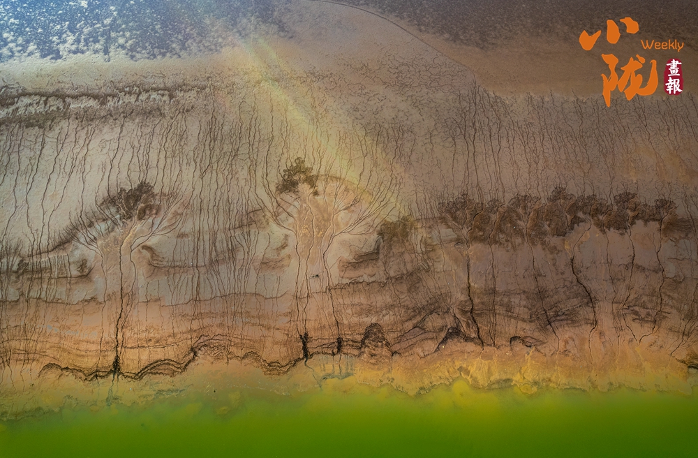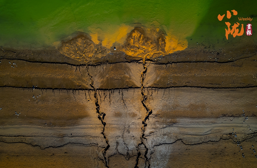 龜裂的泥地并非散亂無序,裂紋竟呈現(xiàn)出清晰的系統(tǒng)分支,仿佛地下有巨樹根系向上拓印而成。陽光斜照之下,明暗對比使這“樹根”更顯立體生動,宛如大地在此刻吐露出它深藏的地脈。