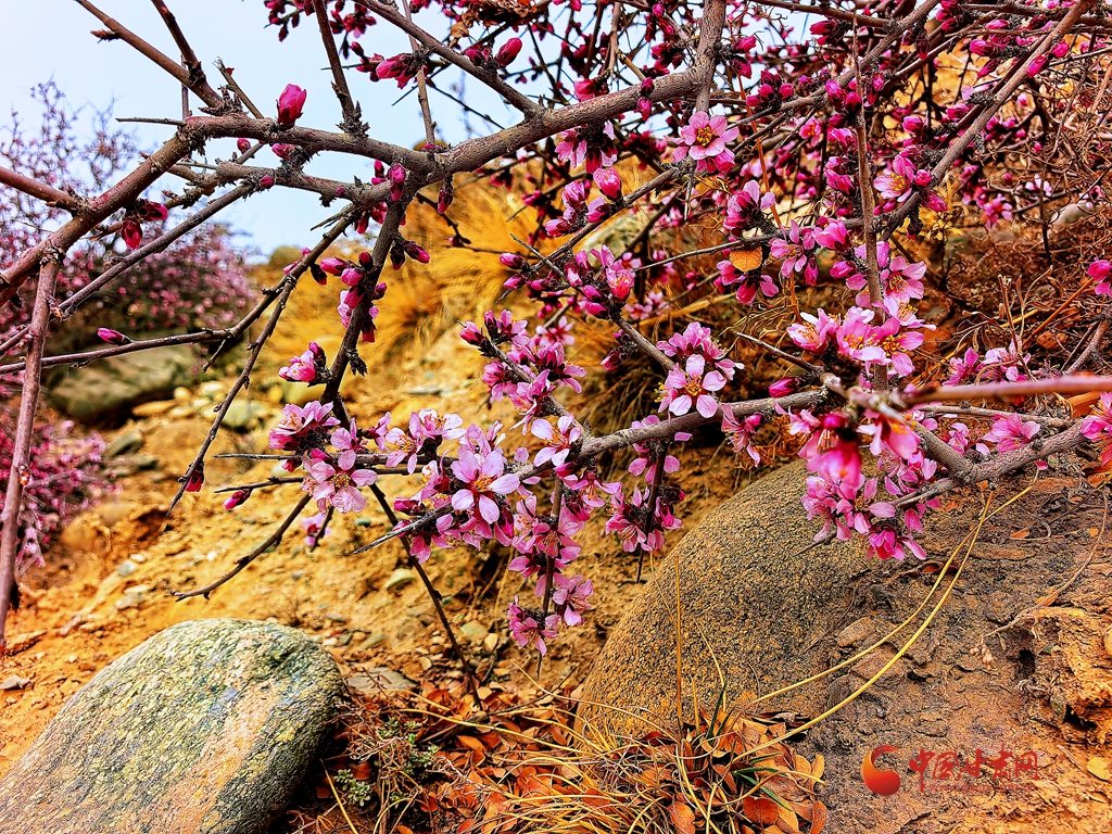 作為亞洲中部荒漠地區(qū)特有的古老殘遺物種,蒙古扁桃被譽為荒漠生態(tài)的“活化石”,是祁連山生態(tài)保護(hù)成果的見證者。祁連山的春天來得遲,去得急,稍縱即逝。三月下旬至四月上旬,正是山中溫差最大之時,白晝氣溫僅零上數(shù)度,入夜仍寒霜凝結(jié)。這般天氣里,許多花卉仍蜷縮花苞,遲遲不肯露頭,唯有蒙古扁桃,毅然打破深山沉寂,恪守“先開花,后長葉”的節(jié)律,傲然綻放。