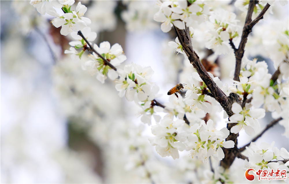 一只蜜蜂停駐花間,振翅采蜜,在純白的花海中增添了靈動(dòng)生機(jī)。各類春花次第開放,白的素雅、粉的嬌嫩、紅的熱烈,為市民獻(xiàn)上一場(chǎng)春日視覺盛宴。