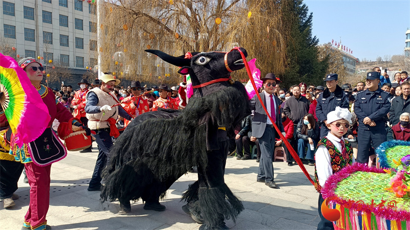 2026年正月十三,和政縣城再度因秧歌沸騰。6支秧歌隊齊聚展演,旱船搖曳、高蹺翩躚、舞獅騰躍、春牛歡騰,街巷人頭攢動、歡聲如潮。這場年度非遺盛會,既是傳統(tǒng)儀式的當代復(fù)現(xiàn),也是文化根脈的集體喚醒。從民間自發(fā)組織到政府引導保護,從家族口傳身授到系統(tǒng)化傳承推廣,和政秧歌始終保持原生質(zhì)感,不事雕琢、貼近生活,成為連接歷史與當下的文化紐帶。