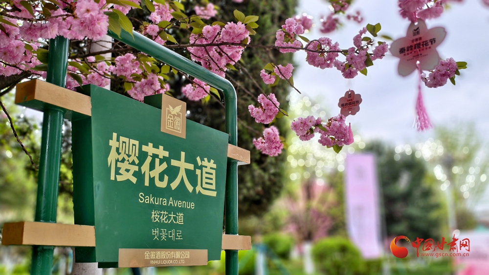 圖為4月10日拍攝的金徽酒文化生態(tài)旅游景區(qū)櫻花大道。