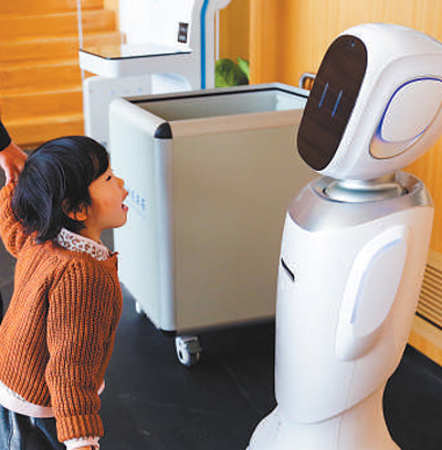 小讀者與館內(nèi)的機(jī)器人交流。闕明芬 攝(人民視覺)