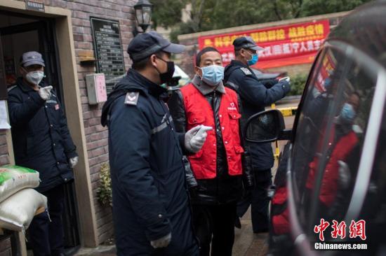 資料圖:社區(qū)工作人員和物業(yè)保安對(duì)進(jìn)出車輛進(jìn)行核實(shí)和對(duì)駕乘人員測(cè)量體溫。泱波 攝