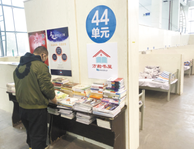 湖北省圖書館參與建設了13家方艙書屋,圖為書屋內景。