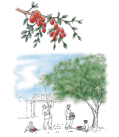 《果兒小典》是一本讀起來輕松,又別有一番滋味的書。隨著人們生活水平的提高,水果干果店鋪隨處可見,店里的果子更是天南海北,無所不有。南北半球的水果干果薈萃一堂,讓人產(chǎn)生了一種果樹永不休息、隨手可得的錯覺。什么才是果子帶給我們的正常感覺呢?那應(yīng)該是一同經(jīng)歷光陰荏苒,春華秋實(shí),經(jīng)過漫長等待之后,還要付出體力才能達(dá)成的相逢,以及由此帶來的喜悅。在憂思家國的杜甫筆下,是“庭前八月梨棗熟,一日上樹能千回”,更帶著一種少年輕狂的沖動和興奮??梢哉f,果子正因為寄托著我們的情感,而變得別有滋味。