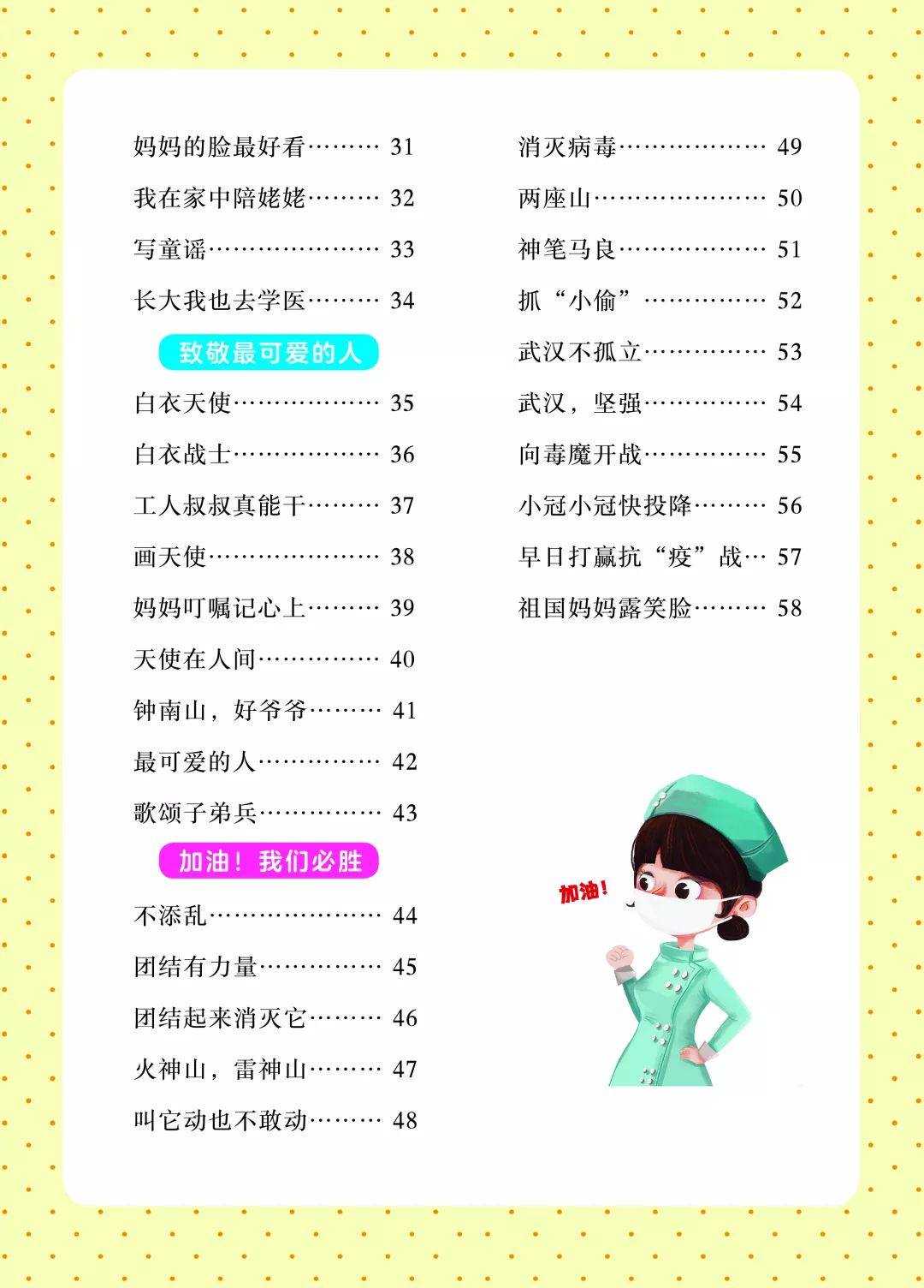 以下為《投降吧,新冠病毒——2020戰(zhàn)“疫”童謠60首》一書全部內(nèi)容: