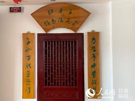 天水市圖書館坐落在藉河之濱,臨流水而擁綠樹,環(huán)境清幽。那是一個雙休日,天氣晴好,記者懷著好奇、敬仰的心情,走樓梯登上了圖書館四樓。特藏室門口上方掛著“邵力子捐書陳列室”扇形木制匾額,左右兩邊掛著木制對聯“力學廬中藏經典,子孫世代惠恩澤”,是集于右任的字。木料呈淡黃色,典雅而洋溢書香之氣。為了滿足記者的愿望,特藏室負責人李東暉犧牲了休息時間,熱情地接待我們并進行認真講解。