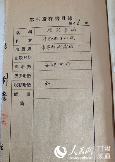 “力學廬藏書”為何保存在天水市?1937年抗日戰(zhàn)爭全面爆發(fā),日機輪番轟炸西安等城市,主政甘肅、陜西6年間自己節(jié)儉日常生活開支所搜購、珍藏的大批珍貴圖書怎樣才能免于戰(zhàn)火?邵力子先生十分焦慮。民國年間著名人士鄧寶珊、馮國瑞多次向邵力子先生“游說”,說明他們的家鄉(xiāng)天水市人文氣息濃厚、又地處西北一隅,屬抗戰(zhàn)后方,藏書環(huán)境較為安全,希望“以之捐贈天水,建館而公諸世”。經過慎重考慮,邵力子先生決定將自己在西安的全部“力學廬藏書”運往天水,并由好友、著名學者馮國瑞負責接收、轉運。在那戰(zhàn)火紛飛的年代,要把幾十箱、數萬冊藏書從西安運到天水,確非易事。李東暉說,在當時陜西省政府主席及秘書長、天水縣長及教育局長等人的協助下,歷經周折、分三次才將這批珍藏轉運成功,當時雇用鹽商的牲口、沿途由鄧寶珊將軍派部隊護送。