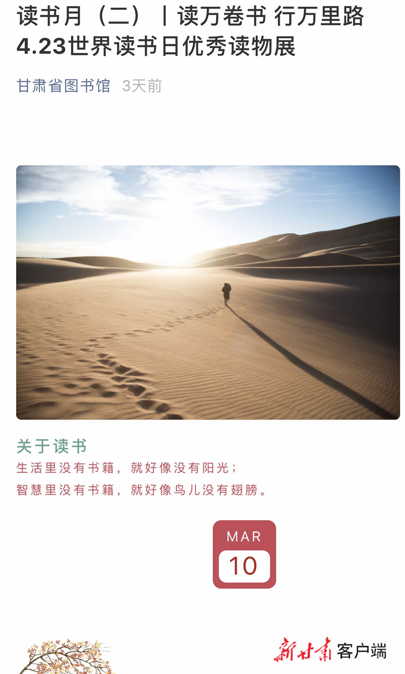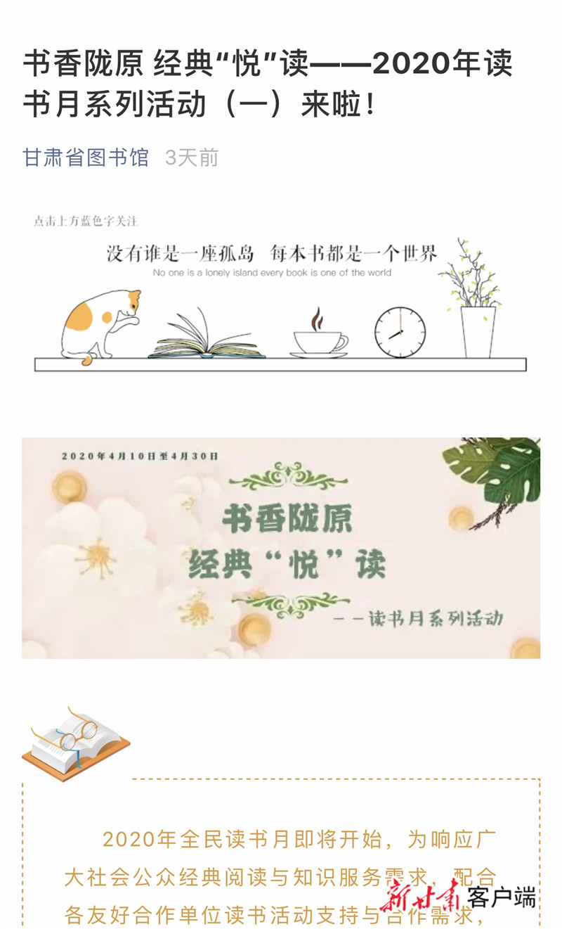 讓我們一起讀書吧!甘肅省圖書館推出線上讀書月系列活動(dòng)