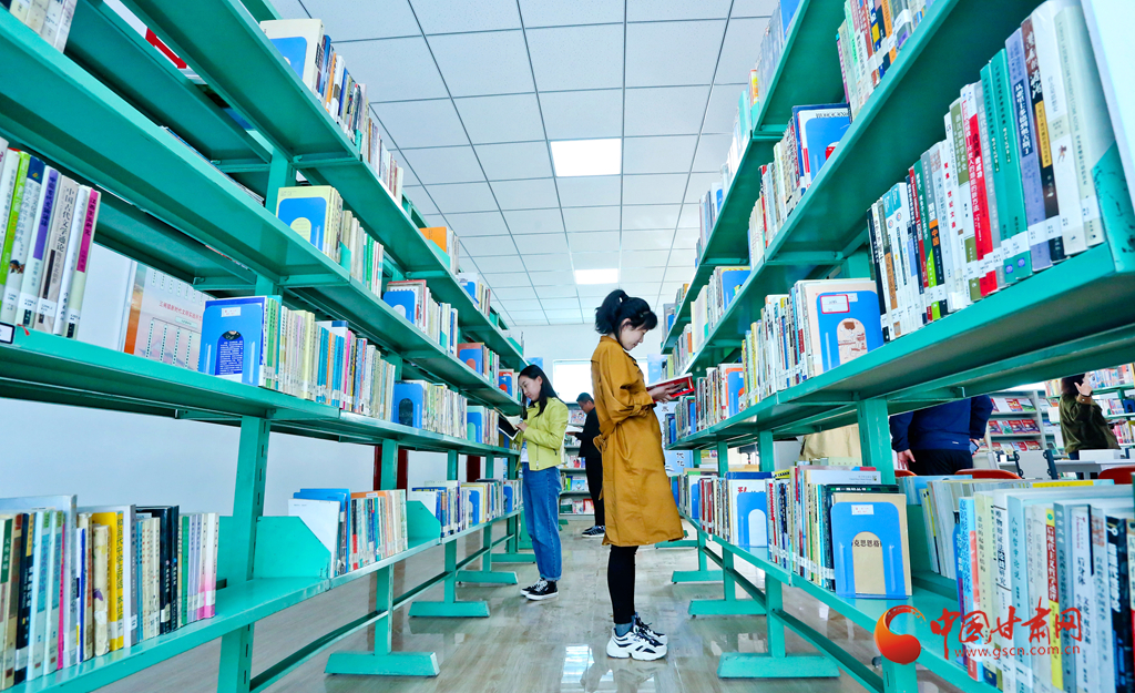 4月21日,甘肅張掖甘州區(qū)三閘鎮(zhèn)農(nóng)家書屋內(nèi)鄉(xiāng)村干部在挑選自己喜愛的書籍。