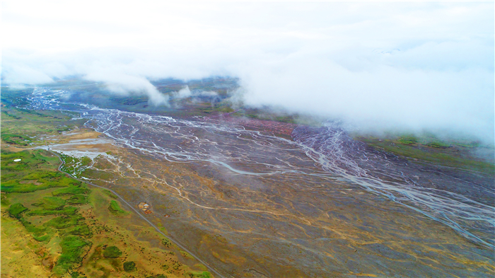 戈壁晚霞和暮鼓,疏勒河流古。聽靜水流深,百轉(zhuǎn)千回,澤潤(rùn)荒原土。