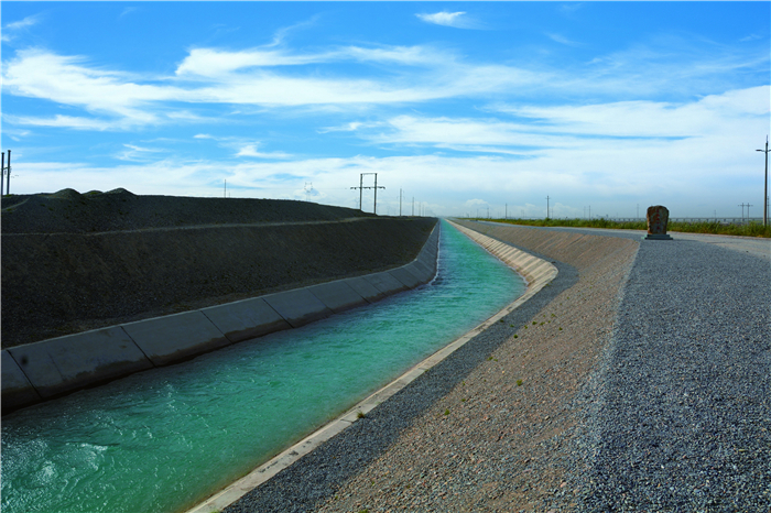 云散霧開天地曠,北塞工程壯。昌馬總干渠,經(jīng)緯通衢,鬼斧神工創(chuàng)。