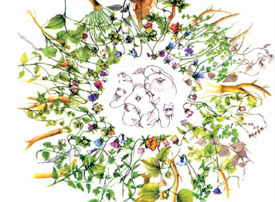 世界黨參屬 畫師以模式種為中心,將世界黨參屬的46個(gè)物種以1∶1的比例展示在一張畫作中,詮釋物種的多樣性及傳達(dá)植物科學(xué)家的研究成果。2018年10月,這幅作品榮獲全球插畫大賽榮譽(yù)提名獎(jiǎng)?!±類劾蚶L