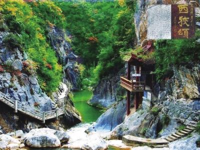 由于路況寬闊平整,從成縣縣城驅(qū)車(chē)西行二十分鐘至東入口,便來(lái)到了號(hào)稱(chēng)青山綠水間的書(shū)法博物館的魚(yú)竅峽,這里就是著名的西狹頌風(fēng)景區(qū)。“光怪靈潭氣欲春,波平浪靜一輪存。鏡連五色龍成彩,珠映千鱗月映痕。”果然,這方寶地清幽綺麗,青山對(duì)峙,澗流清澈。峽內(nèi)的山、水、石、樹(shù),皆成風(fēng)景;亭、橋、廊、榭,相映成趣。舉目環(huán)望,山崖上綠樹(shù)層疊,其間亦或有古樹(shù)參天,老藤纏繞。兩山之間的響水河,或在峽谷中潺潺繞行,或在巨石間沖騰奔瀉,浪花激起的水聲。更美的是懸崖上的水,化成一條白練從高處垂落而下,直泄黃龍?zhí)?。西峽飛瀑“龍?zhí)队吃?rdquo;便成為成縣著名的八景之一,至今為世人津津樂(lè)道,贊嘆不已。