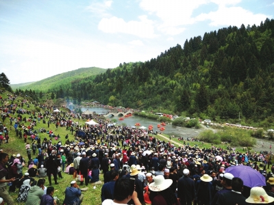 花兒是山歌的一種,亦叫“山曲”“少年”“野曲”,適合田間地頭勞作中演唱的小曲。它誕生于一千七百多年的西晉永嘉末年,其祖源《阿于歌》,由鮮卑族慕容部創(chuàng)作,傳至隴上今甘肅岷縣一帶的吐谷渾部落,被廣泛傳唱。岷州二郎山五月十七花兒會最早源于岷縣的祭神賽會,據(jù)考證其形成時間為明代,參與民眾達(dá)十萬余人,是國家級非遺項目。此刻的二郎山成了花兒的世界,人的海洋,從山腳至山頂歌子海潮般涌動著,來自岷州各地的民間歌手五個一伙,十個一群,對歌賽花兒。置身于情歌的海洋,你會不由自主還原到最初的自己,放開喉嚨高歌一曲,熱辣的歌聲仿佛冬日的暖陽,喚醒沉睡的情感,被花兒撫慰過的心靈柔軟豐盈。
