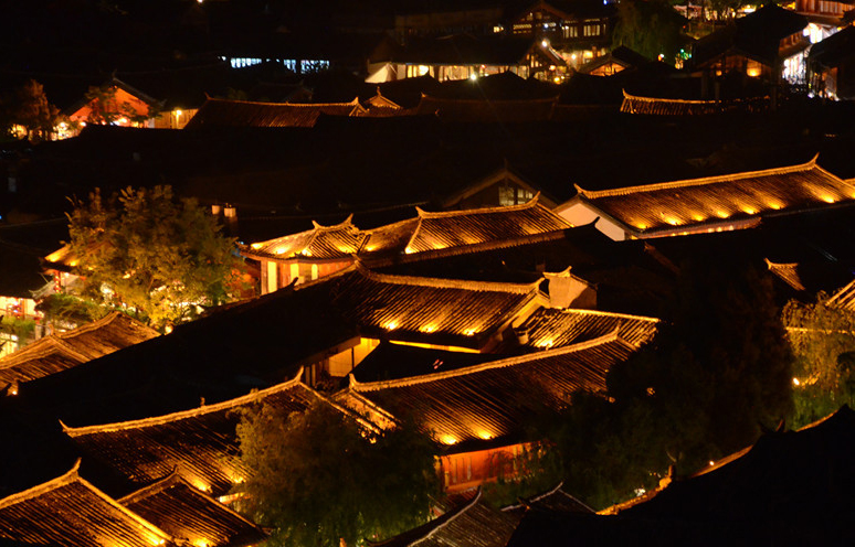 黃昏時(shí),主人再去打水澆花時(shí),我又回到了穿城而過(guò)的水流之中。這時(shí),古城五彩的燈光把渠水輝映得五彩斑斕。游客聚集的茶樓酒吧中,傳來(lái)人們的歡笑與歌唱。這些人在自己所來(lái)的遠(yuǎn)處地方,即便是寂靜時(shí)分,內(nèi)心也很喧嘩。在這里,盡情歡歌處,夜涼如水,他們的心像一滴水一樣晶瑩。