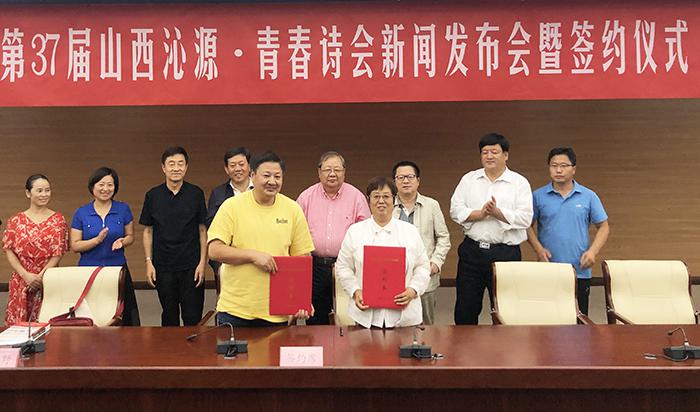 沁源縣委書記金所軍介紹沁源縣盛產(chǎn)油松、褐馬雞,村村有秧歌隊和籃球場,有山有水,美麗又美好。他將作為“全國森林旅游示范縣”的沁源縣詩意概括為“三晉大地的香格里拉”“近在咫尺的桃花源”。沁源縣委宣傳部部長黃貴河對沁源縣的文學創(chuàng)作情況及第37屆“青春詩會”活動承辦設想進行了介紹。發(fā)布會結束后,沁源縣政府副縣長李建萍與《詩刊》事業(yè)發(fā)展部副主任藍野簽定了合作協(xié)議。