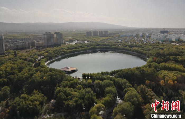 2020年7月,俯瞰甘肅嘉峪關(guān)東湖生態(tài)旅游景區(qū),該景區(qū)是國(guó)家級(jí)4A旅游風(fēng)景區(qū),滿(mǎn)眼綠意惹人醉。(資料圖) 丁思 攝