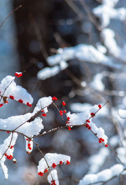 許多人走到這里,停下了腳步,被這雪后滿樹(shù)熱烈的紅色吸引。風(fēng)在這個(gè)時(shí)刻,沒(méi)有了聲息,似乎是因?yàn)檫@一簇炫目的紅。天空是清澈透明的藍(lán),空氣中彌漫著清冽的干枯植物的氣息,這氣息來(lái)自頂著雪花的干草、沉睡的樹(shù)木、滄桑的松柏、埋藏在雪下的紅隼的羽毛、雨燕干燥的糞便,以及鳥(niǎo)雀熱愛(ài)的金銀木酸甜可口的果實(shí)。