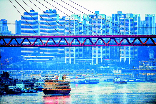 長江和嘉陵江在朝天門碼頭交匯,兩江四岸把重慶分割成了多個天然組團(tuán),各組團(tuán)之間的交通除了橋梁隧道還有索道。建于1984年的長江索道,最初是重慶市民的交通工具。那時候,重慶主城區(qū)剛剛建成一座長江大橋,山路崎嶇,兩江阻隔,自行車騎不得,公交車又少得很,市民出行只能感嘆“蜀道難”。而長江索道,讓渝中和南岸這兩個主城核心區(qū)的市民來往自如。三四十年光景,彈指一揮間,山城重慶一座座跨江大橋橫空出世,一座座摩天大樓騰空而起,日漸顯現(xiàn)國際化都市的風(fēng)范。當(dāng)軌道、地鐵、快速公交車聯(lián)成一張龐大的現(xiàn)代公交網(wǎng)之際,長江索道的公交功能漸漸退化,觀光功能應(yīng)運而生,竟從一個純樸的村姑變成了時尚的美女。2006年影片《瘋狂的石頭》上映后,它越來越火,游客排長隊坐索道成為家常便飯。