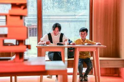 5月8日,一對(duì)母子在福建省晉江市東石鎮(zhèn)“母親的房子”圖書館內(nèi)閱讀。今年5月,福建省晉江市東石鎮(zhèn)“母親的房子”圖書館正式對(duì)外開放。“母親的房子”是福建省晉江東石籍作家蔡崇達(dá)《皮囊》書里所描述的一座房子?,F(xiàn)在,這座房子被他改造成了一座現(xiàn)代風(fēng)格與閩南特色相融合的公益圖書館,成為當(dāng)?shù)毓参幕囊徊糠帧P氯A社發(fā)