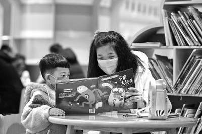 在山西太原市圖書館,家長和小朋友一起看書。新華社發(fā)