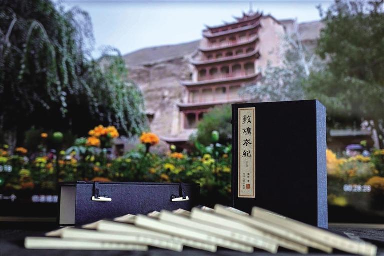 兩個(gè)月后,我如愿以償。《敦煌本紀(jì)》繁體線裝本(限量版)出品,兩函,每函八冊(cè),總計(jì)十六冊(cè),繁體豎排,全手工裝訂。技藝之美,工序之繁,裝幀之考究,未之見(jiàn)過(guò)!當(dāng)我打開(kāi)拿到手上時(shí)肅然起敬,自然會(huì)靜下來(lái),恭恭敬敬翻閱,你能感受到甘肅豐富的歷史文化資源、厚重的文化積淀和波瀾壯闊的滄桑巨變。正是偉大的藝術(shù)和同樣偉大的宗教,在敦煌建筑了人類精神的輝煌莫高窟,人們生活在其中,才擁有現(xiàn)實(shí)人生意義的充實(shí)感和踏實(shí)感。