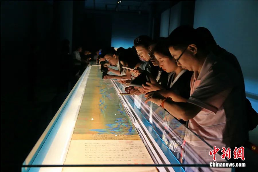 觀眾在北京故宮博物院參觀《千里江山圖》。中新社發(fā) 劉憲國 攝