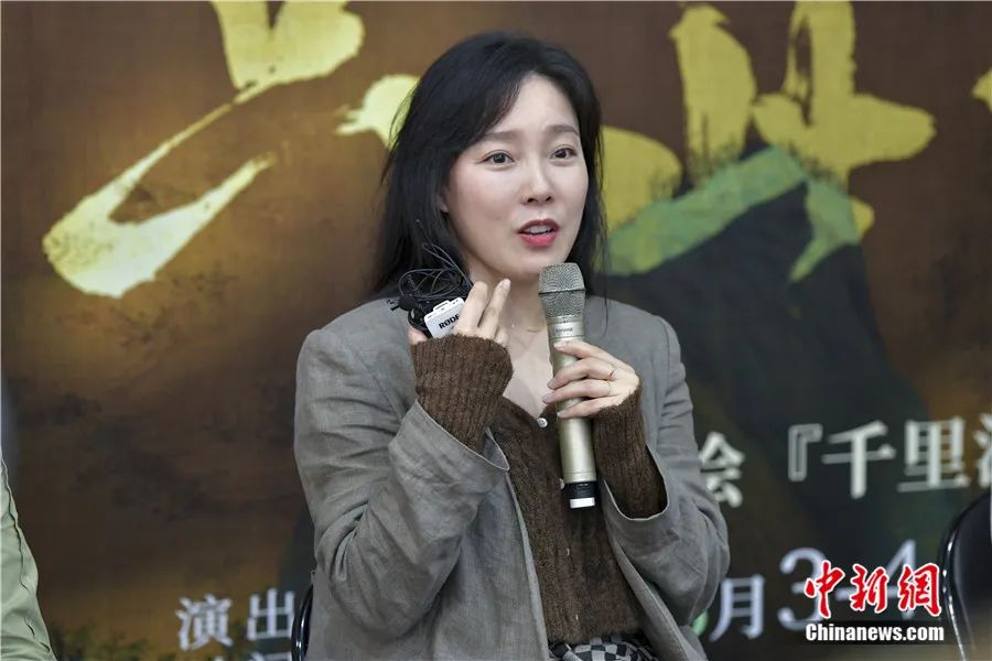 《只此青綠》總編導(dǎo)韓真今年3月3日在??诮邮苊襟w采訪。中新社記者 駱云飛 攝