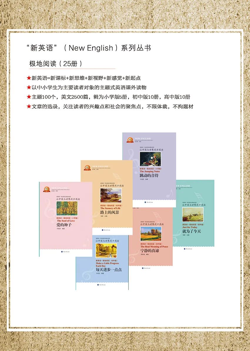 涉及與中小學(xué)生學(xué)習(xí)、生活、成長密切關(guān)聯(lián)的主題100個(gè)、美文2500篇,并依照難易梯度,輯為小學(xué)版5本,初中版10本,高中版10本。