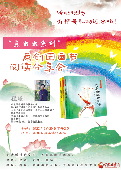 主題活動包括聯(lián)合甘肅少年兒童出版社邀請兒童繪本閱讀與教育專家程曦為小讀者分享“點蟲蟲系列”原創(chuàng)圖畫書,西北書城“快樂童年·好書相伴”主題6.1折兒童圖書展,線上微商城“抽盲盒”,“小劇人”兒童沉浸式閱讀,筱筱老師講繪本故事,親子手工制作“小粽子”,與蘭州市圖書館共同開展“慶六一·迎端午”我是朗讀者活動。