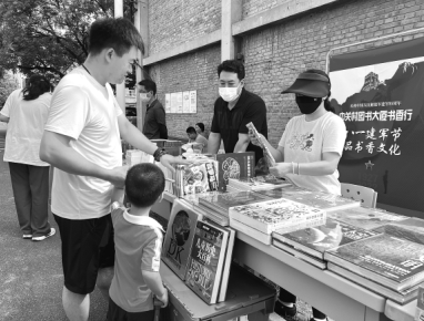 中關(guān)村圖書大廈攜手西郊機場居民委員會走進西郊機場家屬區(qū),開展“八一建軍節(jié) 品書香文化”主題宣傳活動。