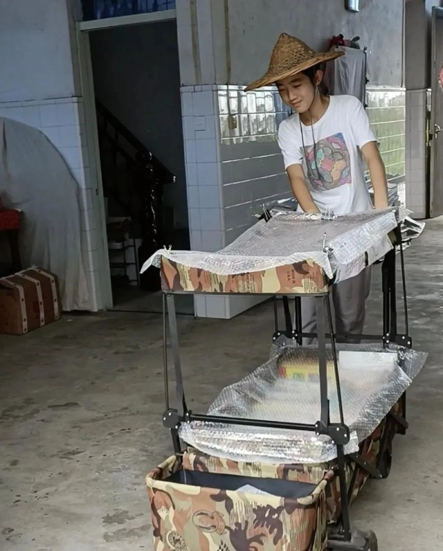 頭上戴著斗笠,臉上掛著靦腆的笑,推著裝滿課外書(shū)的迷彩小推車(chē),趕往外婆家附近的集市擺攤。最近,14歲少年王子悅開(kāi)辦“流動(dòng)圖書(shū)館”的視頻感動(dòng)了很多網(wǎng)友。