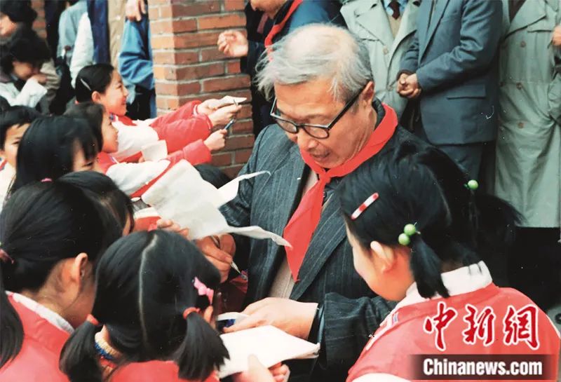 任溶溶為學(xué)生簽名。中新社發(fā) 受訪(fǎng)者 供圖