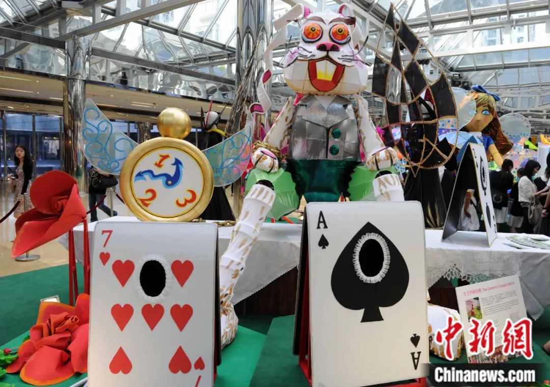 以西方著名兒童文學(xué)作品《愛(ài)麗絲夢(mèng)游仙境》為藍(lán)本創(chuàng)作了巨型木偶及巡游藝術(shù)品在香港太古城中心亮相。中新社記者 任海霞 攝