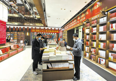 10月17日,記者在河南省洛陽(yáng)市新華書(shū)店看到,“喜慶二十大 奮進(jìn)新征程”主題出版物展示專區(qū)重點(diǎn)陳列了《習(xí)近平談治國(guó)理政》第一卷至第四卷、《百年初心成大道》等數(shù)百種黨政理論學(xué)習(xí)讀物,吸引了廣大讀者駐足閱讀。