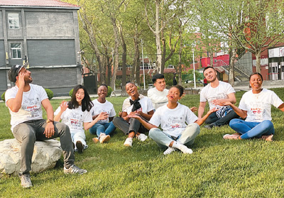 對(duì)漢語(yǔ)非母語(yǔ)的中文學(xué)習(xí)者來(lái)說(shuō),學(xué)習(xí)中國(guó)古詩(shī)詞,可以領(lǐng)略中華文化的魅力。圖為今年4月,北京第二外國(guó)語(yǔ)學(xué)院漢語(yǔ)學(xué)院的來(lái)華留學(xué)生在校園中排練詩(shī)歌吟唱。