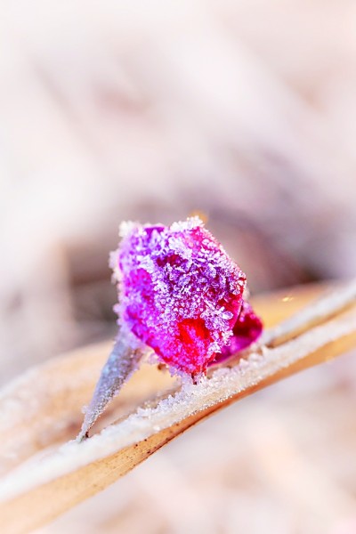 在山東省淄博市高青縣,掉落的花瓣沾滿(mǎn)冰霜。新華社發(fā)
