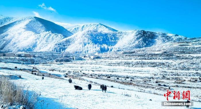 資料圖:初冬時(shí)節(jié),蘭州市榆中縣馬坡鄉(xiāng)迎來降雪,一場冬雪過后,村莊田野沐浴在雪景中,藍(lán)天白雪下,似童話世界。張學(xué)江 攝