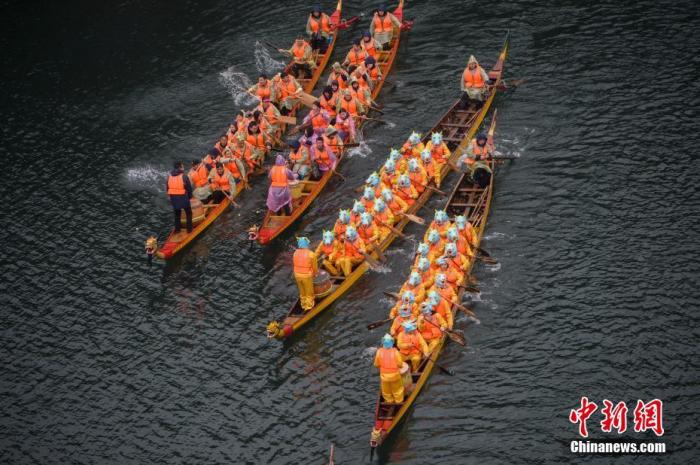 資料圖:正值農(nóng)歷二月初二,湖南長(zhǎng)沙石燕湖舉行“龍?zhí)ь^”龍舟賽。楊華峰 攝