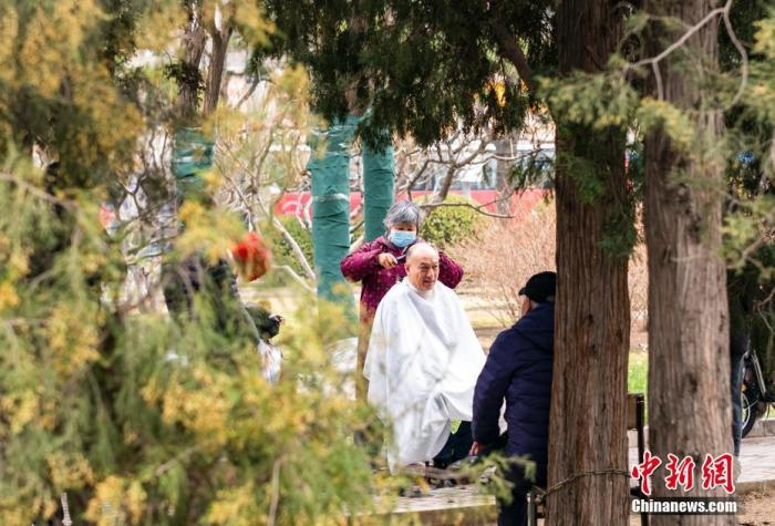 資料圖:北京市民在街頭休閑區(qū)理發(fā)。當(dāng)天是中國(guó)農(nóng)歷二月初二,民間有“二月二,剃龍頭”的傳統(tǒng)習(xí)俗,寓意辭舊迎新,帶來(lái)好兆頭。 中新社記者 侯宇 攝